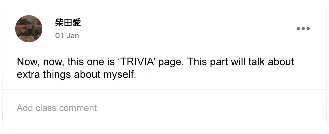 Now, now, this one is 'TRIVIA' page. This part will talk about extra things about myself.
